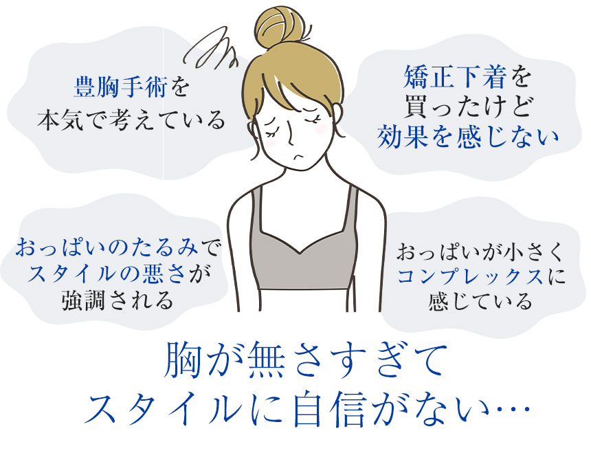 当サロンはブラや矯正下着の販売は一切いたしません。 お腹や背中の脂肪をバストへと移動させる独自技術を行っている為、定着すれば元に戻ることは極めて少ないです。