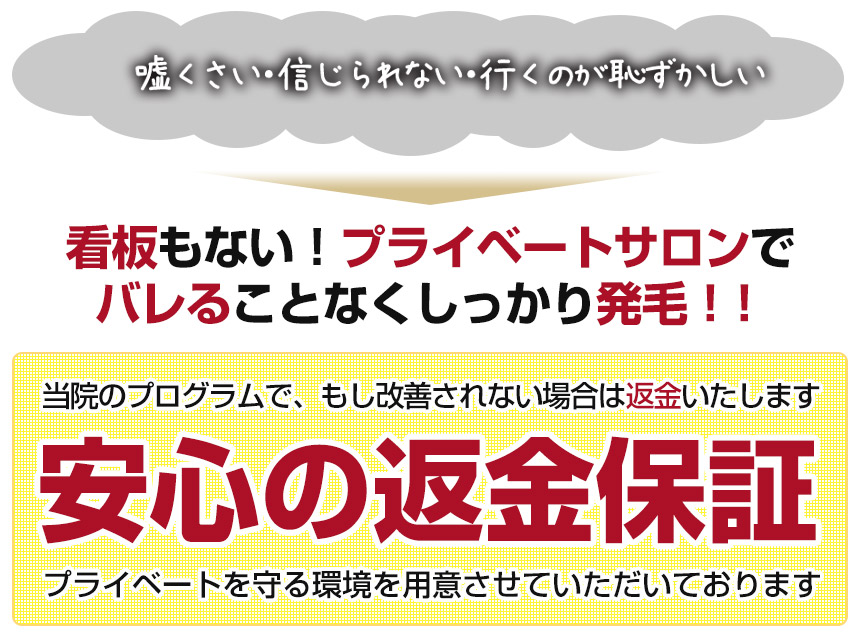 A.福工大前駅から車で約5分の「みつとも整体院」の近くです。外観からは「メンズ発毛サロン」とわからないようにしています。完全プライベートサロンですので、場所はお問い合わせ後にお伝えしております。