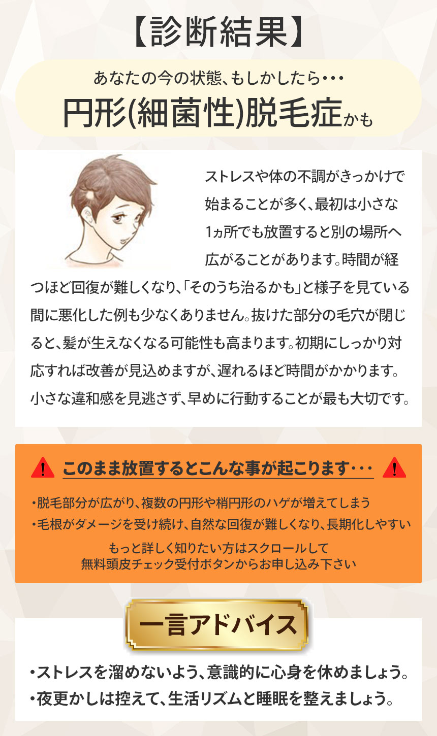Q6. 円形や楕円形に髪が抜けた部分はありますか?