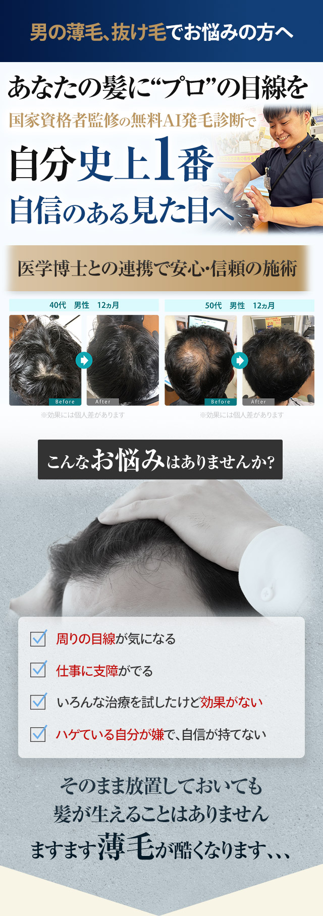 【Q6】前頭部〜頭頂部がつながるように薄いですか?