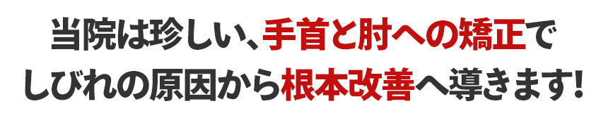 原因②抹消神経末梢神経の場合は肘や手首の使い過ぎや糖尿病の原因がになります。代表疾患は「手根管症候群」「肘部管症候群」といいます。特徴は痛めている部位から下先がしびれるのが特徴です。