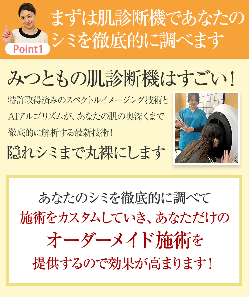 最初の1ヶ月で施術を中断してしまうと、シミが排出する途中段階ですので数回分が無駄になってしまう可能性があります。