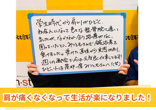 - 福岡市から五十肩の治療で来院 2017年9月13日